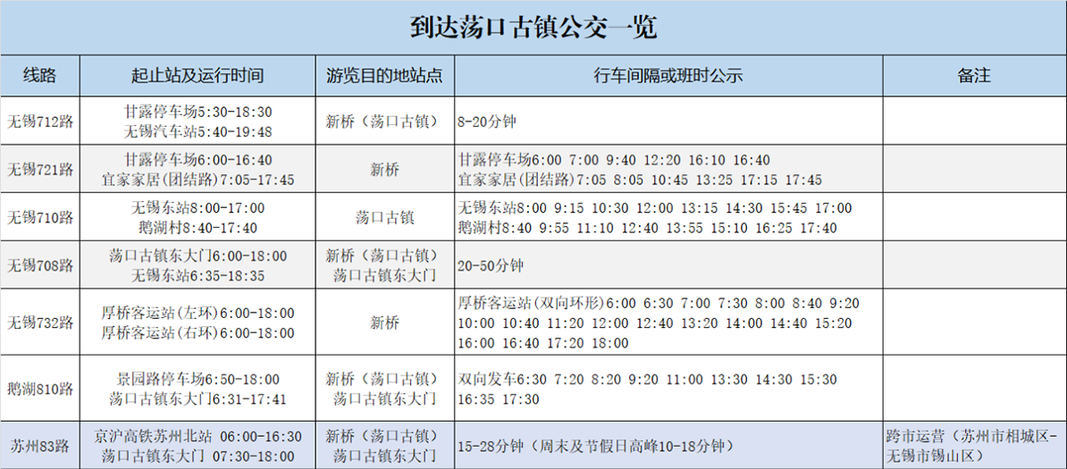 京沪高铁无锡东站 710路 荡口古镇东大门 8:40-17:40